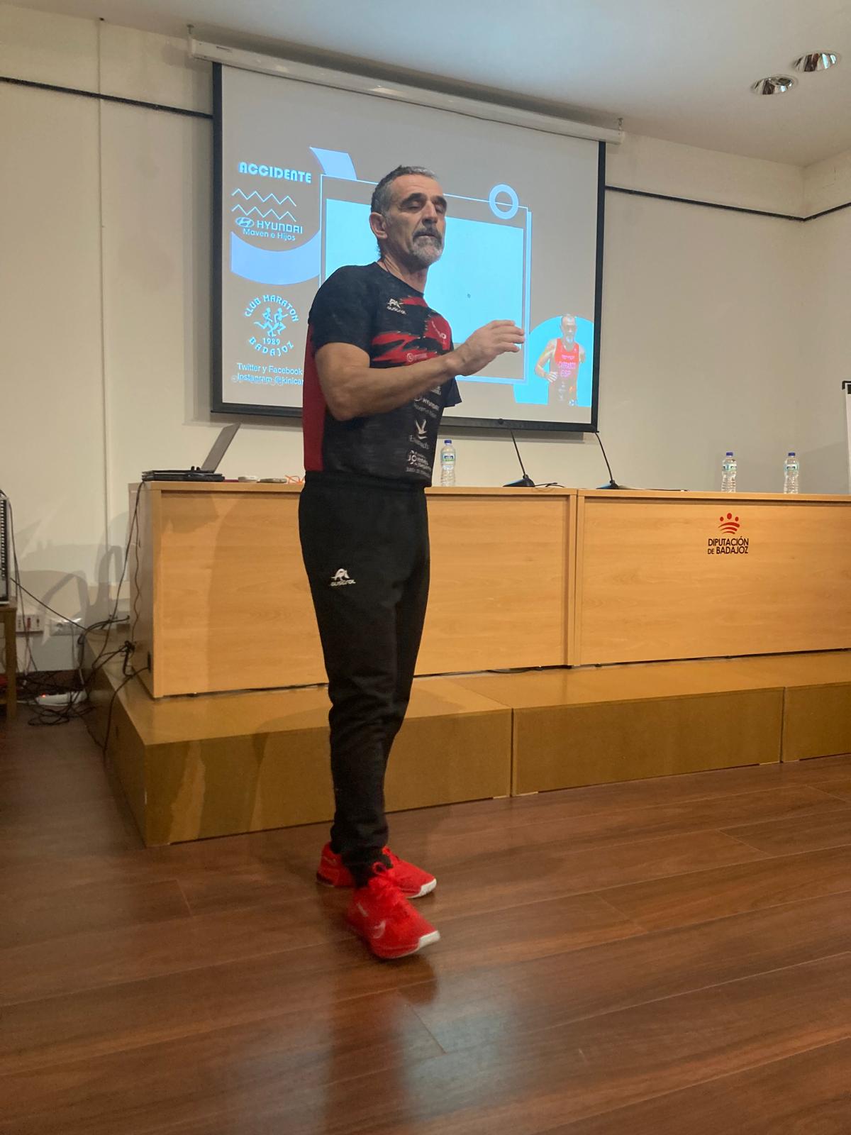 Kini Carrasco, atleta paralímpico extremeño, inaugura el ciclo de conferencias que organiza el Club Maratón Badajoz con motivo de su 35 aniversario.